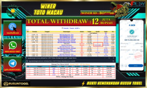 Selamat kepada . BPK. FI*** RI**** yang akhirnya mendapatkan jackpot besar TOTO MACAU !!! Pada tanggal 12 AGUSTUS 2025 di situs bandar togel terpercaya RUSUNTOGEL . Dalam WITHDRAW sebesar Rp. 12.000.000,- di bayar dengan lunas dan prosesnya di lakukan secara cepat oleh pihak RUSUNTOGEL . Dengan bukti yang kami berikan sudah seharusnya menjadi hal yang bisa anda semua bayangkan betapa aman dan nyamannya pelayanan yang di berikan RUSUNTOGEL kepada para membernya. Tentunya jika anda masih bingung mencari situs bandar togel online terpercaya, anda bisa segera melakukan pendaftaran dan bermain di situs togel online terpercaya dan terbukti membayar semua kemenangan jumlah berapapun seperti situs RUSUNTOGEL !.